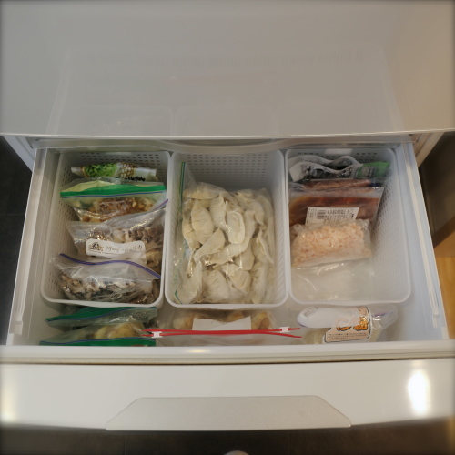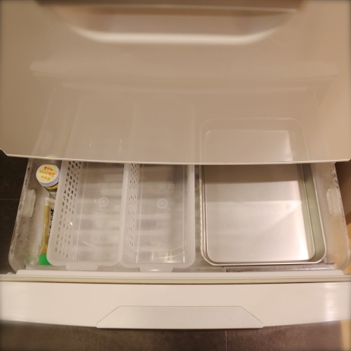 簡単な野菜室の仕切りにも無印。