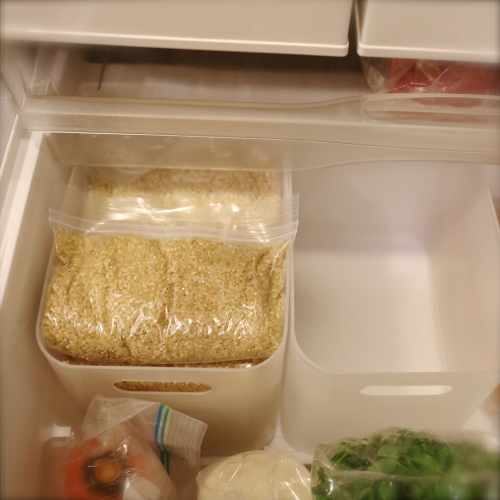 開封後はこんなふうにジップロックに3合づつわけてしまうとあとで楽♪