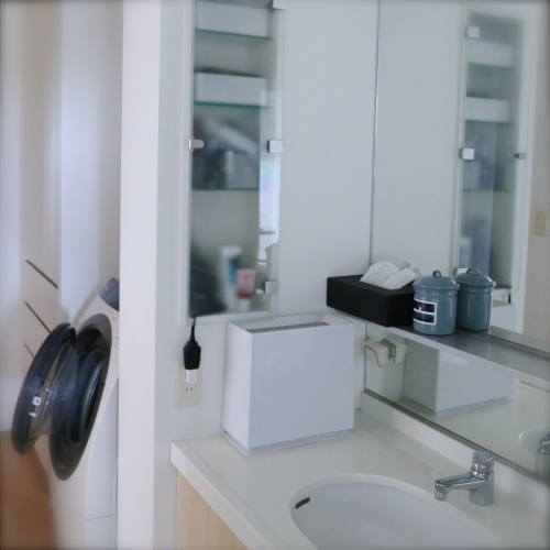 洗面台の横の埋め込み式の収納です。