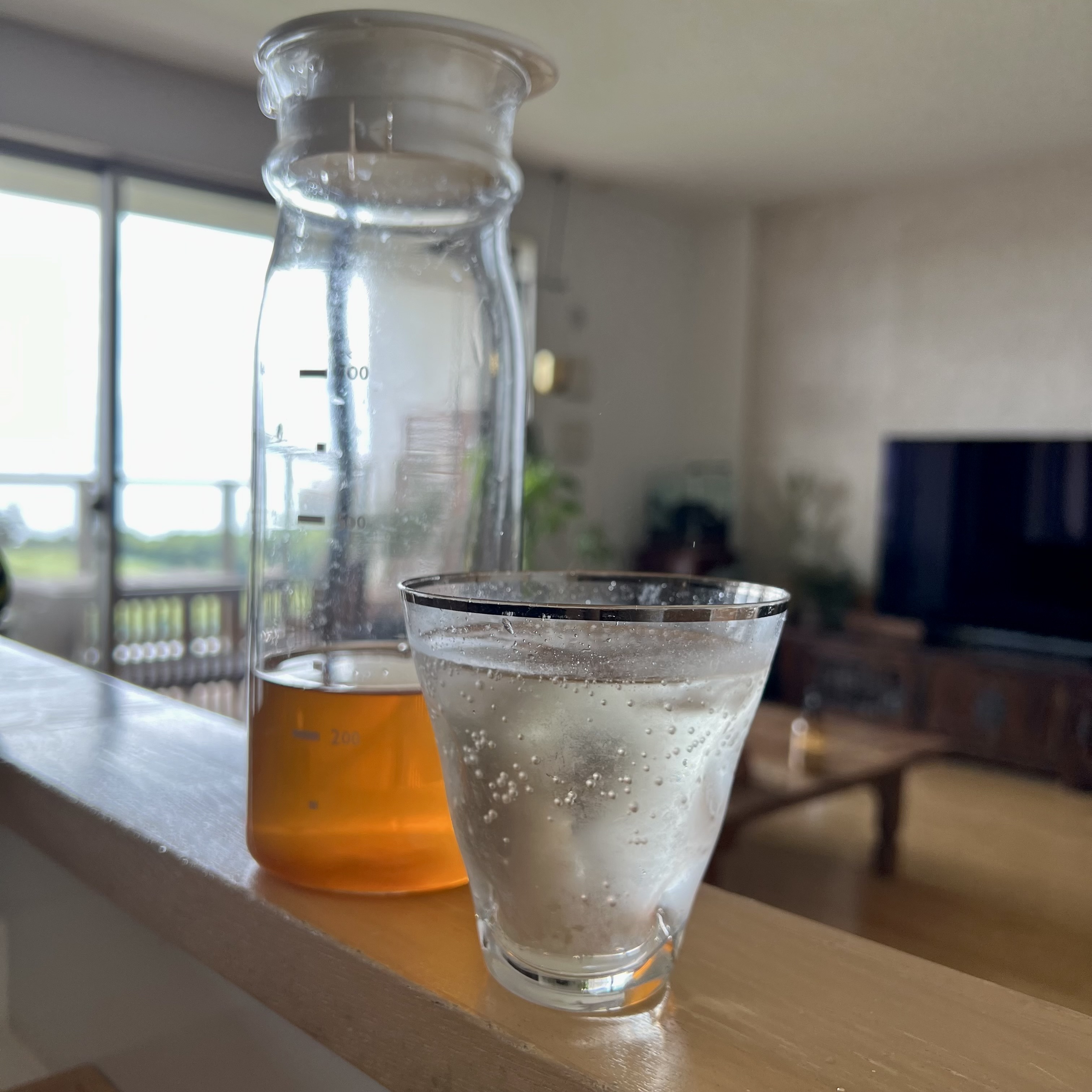 ビリッと破いた茅乃舎だし1袋ときび砂糖1カップ